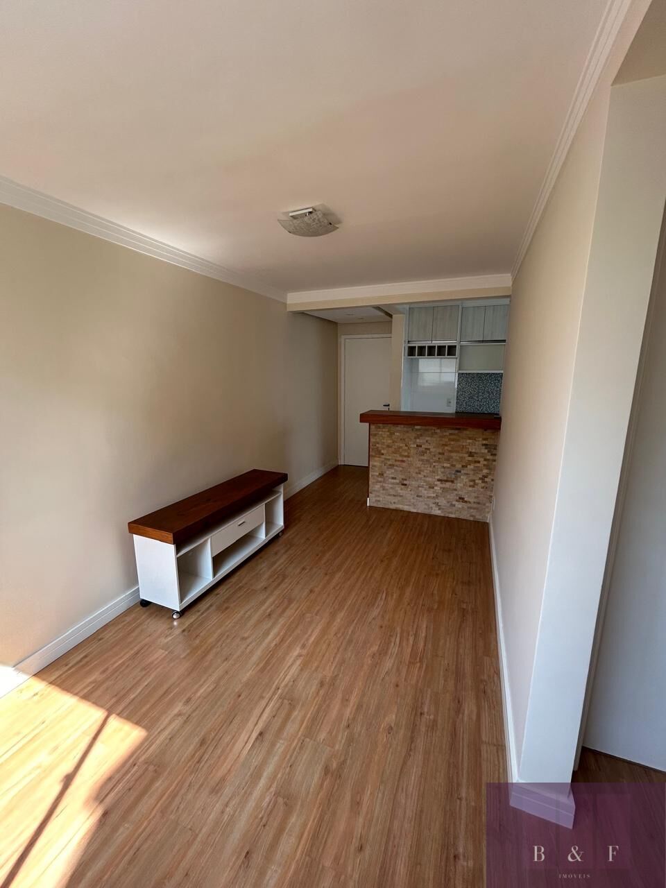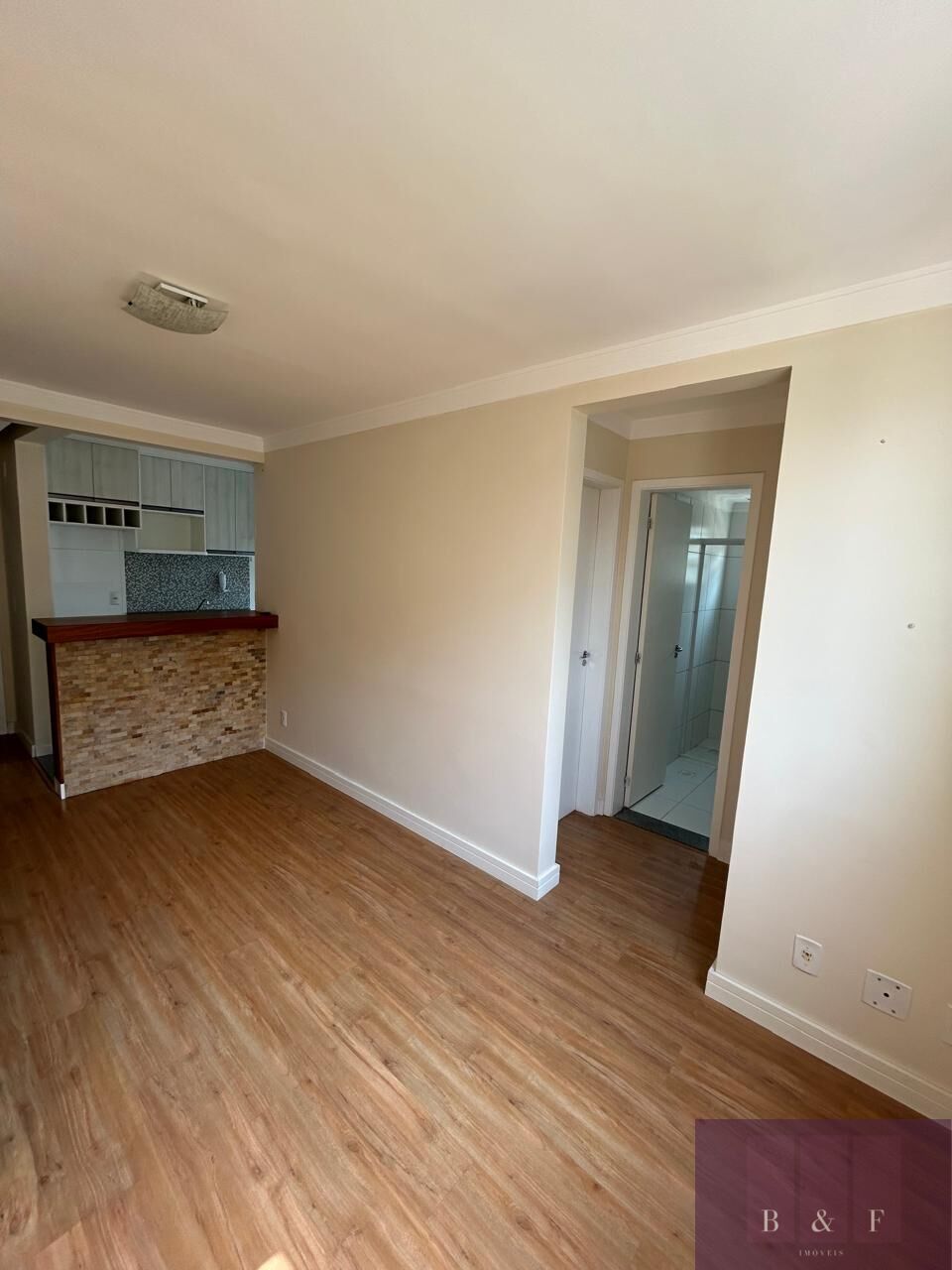 Lindo apartamento de 2 dormitórios, com sala aconchegante, cozinha planejada, área de serviço e banheiro com box. Conta com 1 vaga de garagem e ambientes iluminados por LED, além de ventiladores de teto na sala e no dormitório.