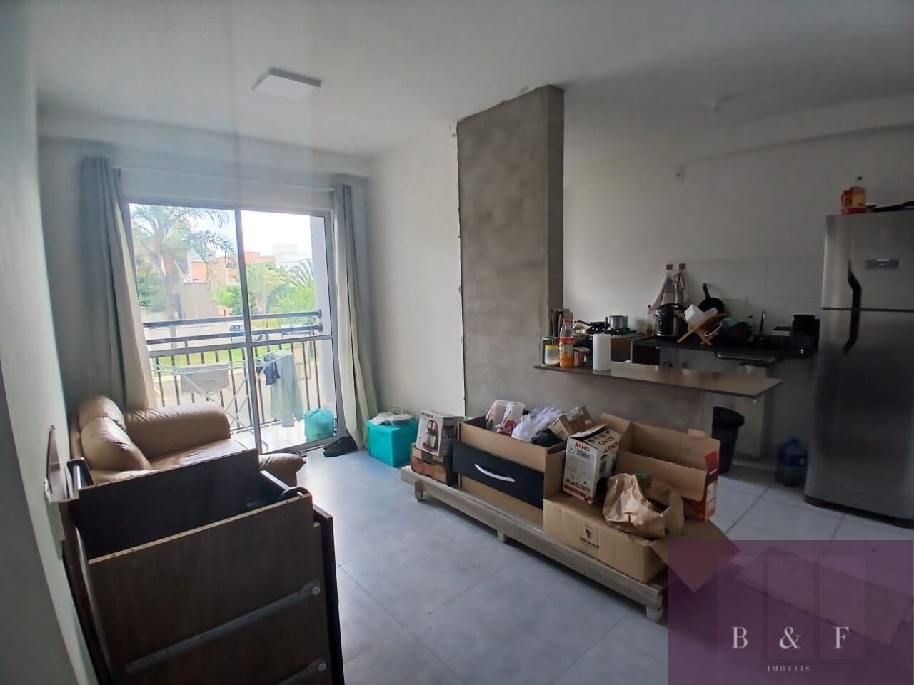 Apartamento com sacada e vaga de garagem.